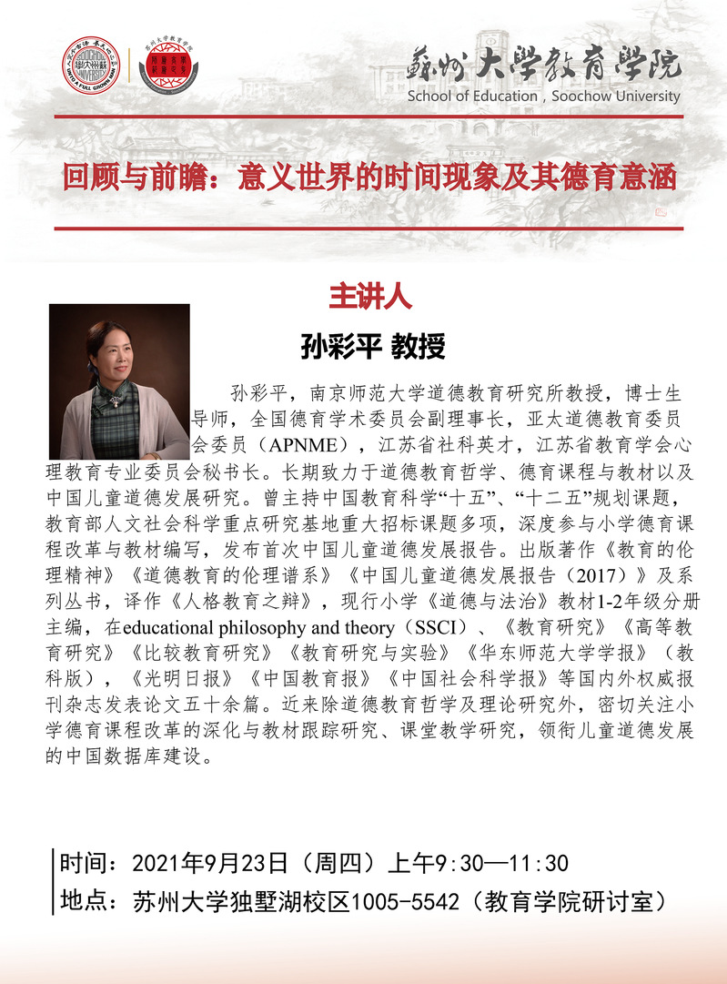 学术报告:回顾与前瞻:意义世界的时间现象及其德育意涵[9.23]