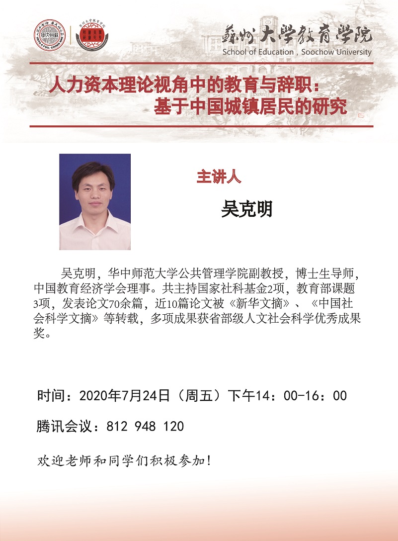 学术报告:人力资本理论视角中的教育与辞职:基于中国城镇居民的研究[7.24]