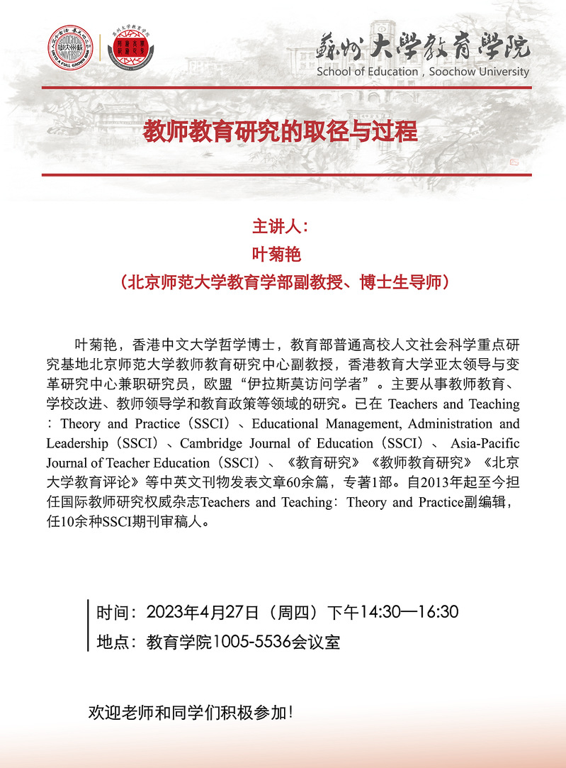 学术报告:教师教育研究的取径与过程[4.27]