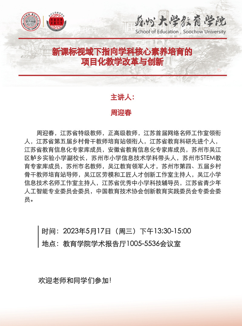 学术报告:新课标视域下指向学科核心素养培育的项目化教学改革与创新[5.17]