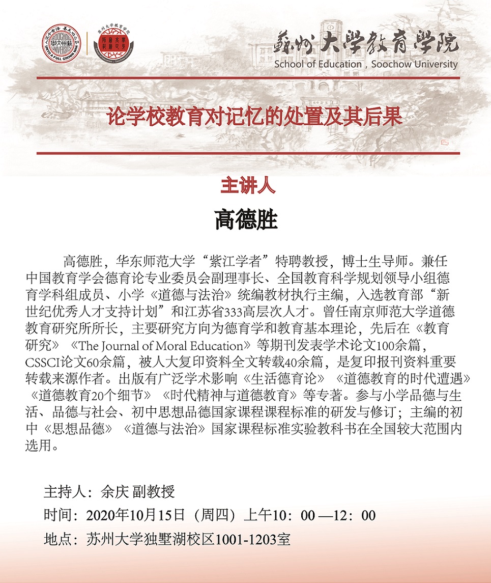 学术报告:论学校教育对记忆的处置及其后果[10.15]