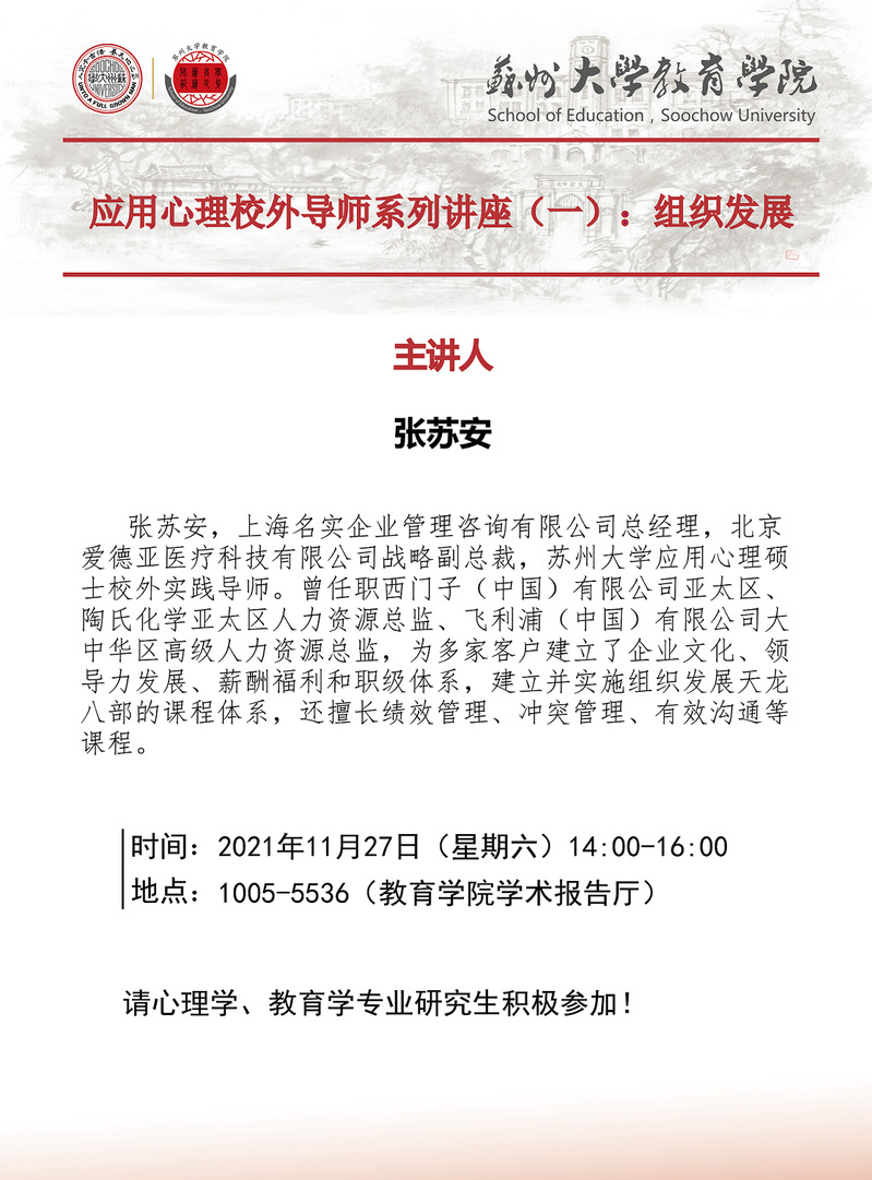 应用心理校外导师系列讲座(一):组织发展[11.25]