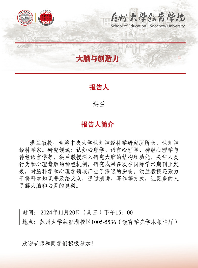 学术报告:大脑与创造力[11.20]
