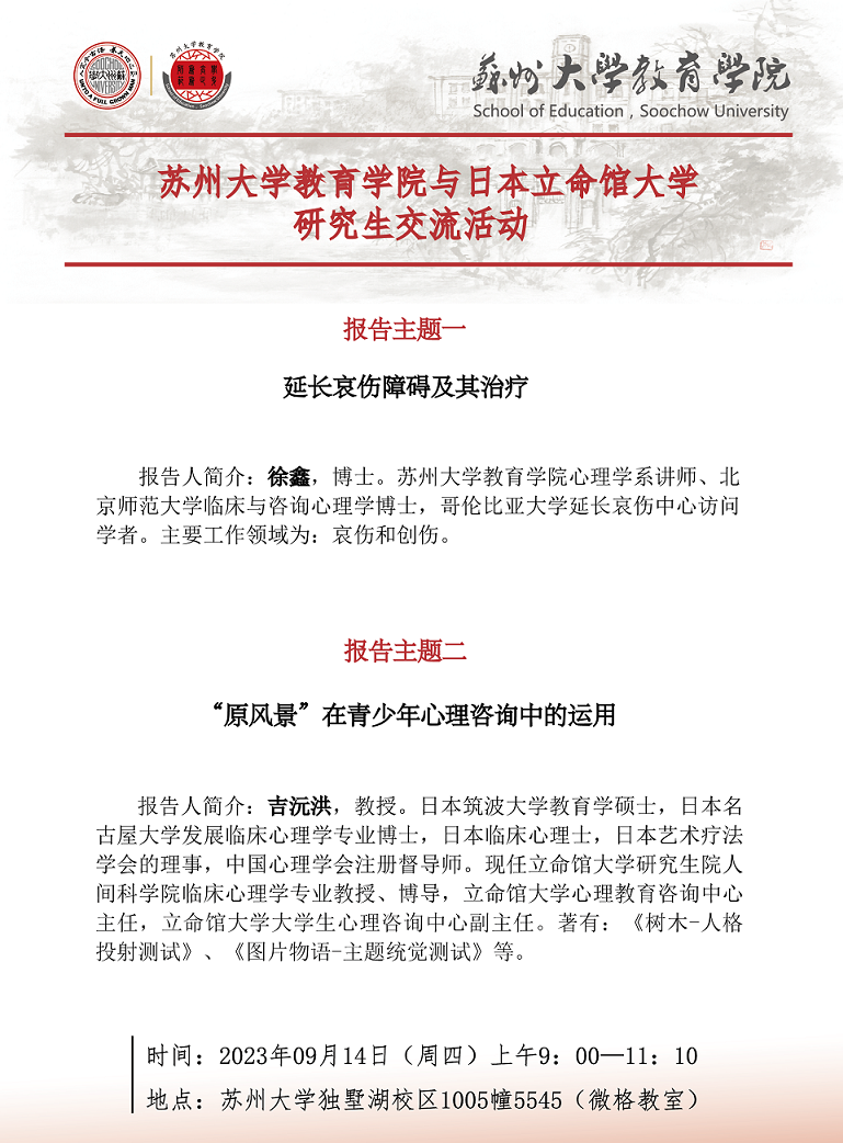 苏州大学教育学院与日本立命馆大学研究生交流活动[9.14]