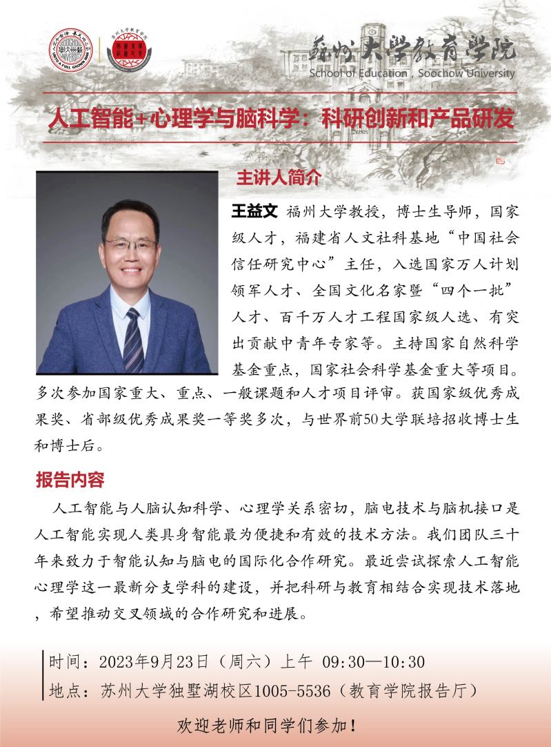学术报告:人工智能+心理学与脑科学:科研创新和产品研发[9.23]