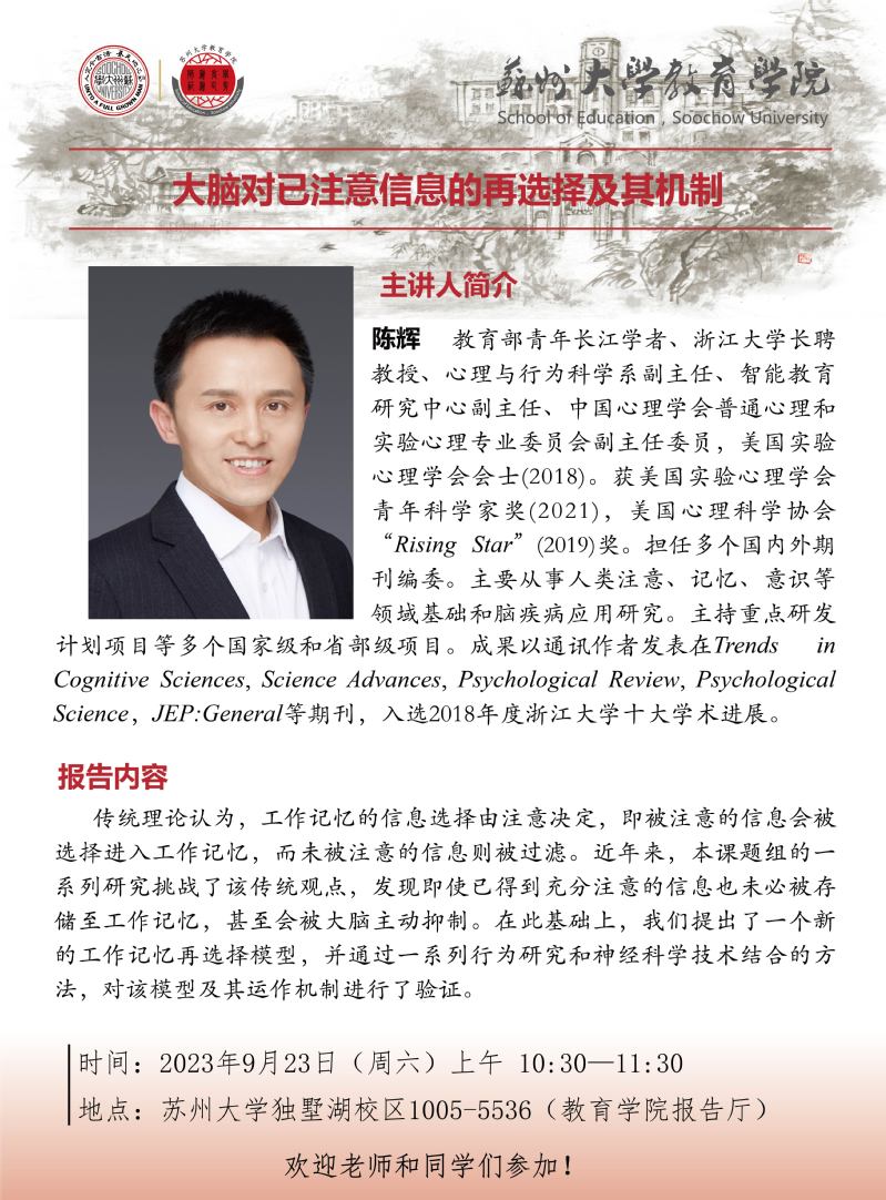 学术报告:大脑对已注意信息的再选择及其机制[9.23]