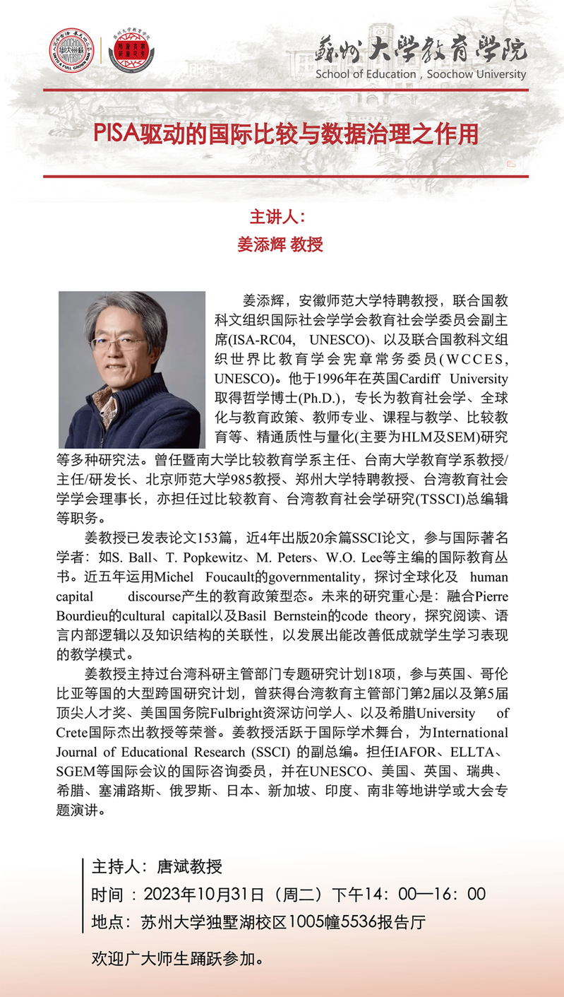 学术报告:PISA驱动的国际比较与数据治理之作用[10.31]