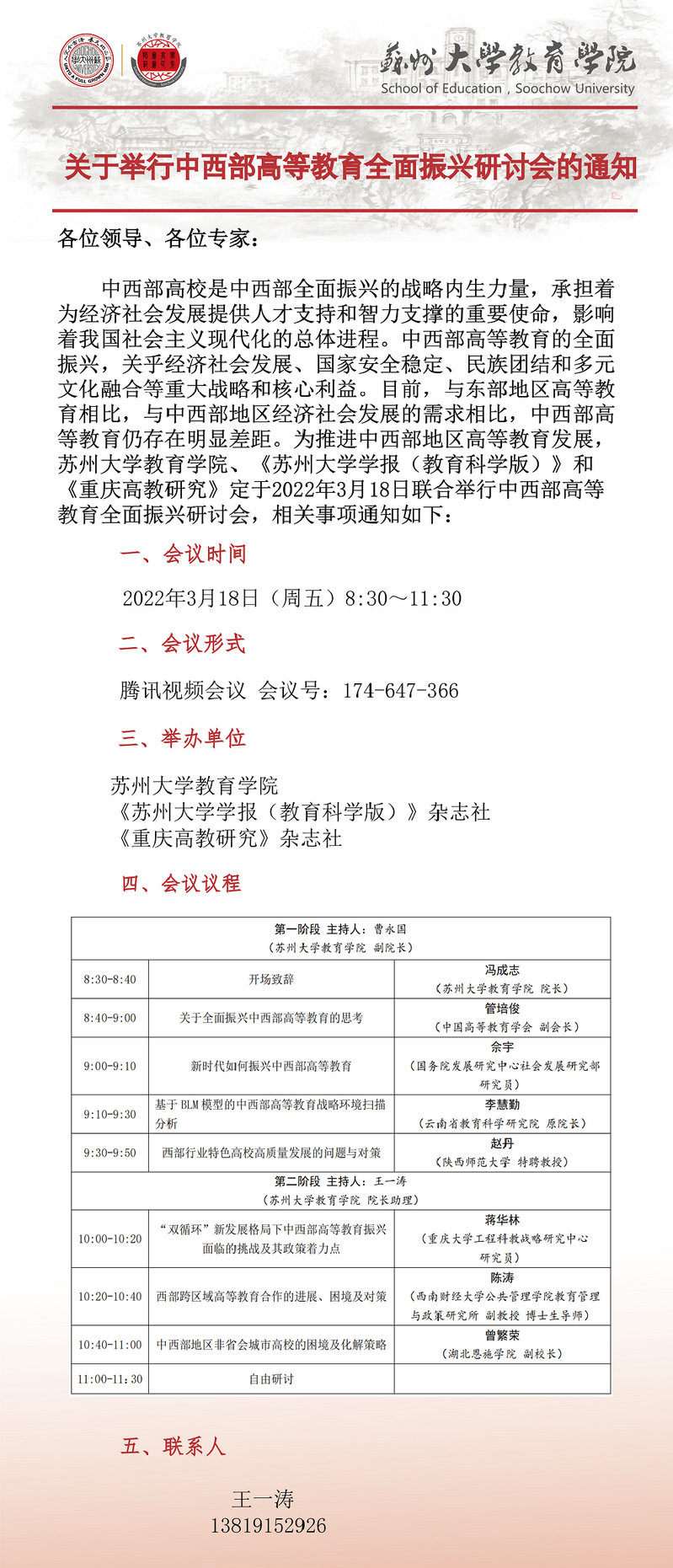 关于举行中西部高等教育全面振兴研讨会的通知[3.18]