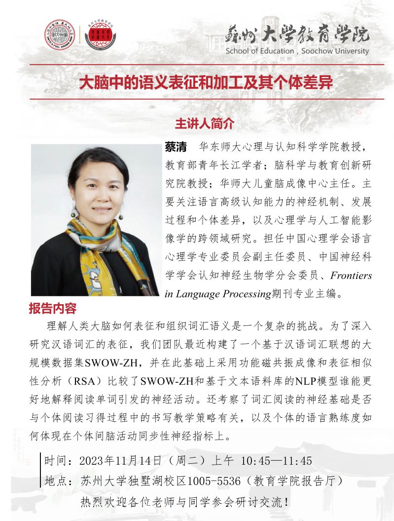 学术报告:大脑中的语义表征和加工及其个体差异[11.14]