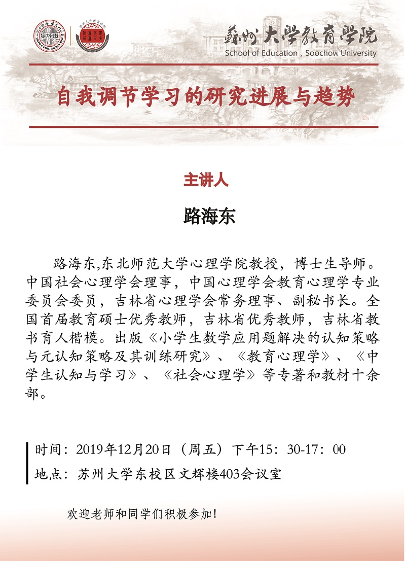 学术报告:自我调节学习的研究进展与趋势[12.20]