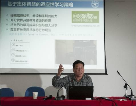 张剑平教授从适应性学习及其途径、集体智慧下的适应性学习和博物馆中的非正式学习等三个方面系统分析了基于集体智慧的个性化在线学习,并提出了基于集体智慧的适应性学习策略和博物馆学习的研究框架,最后就其领衔的浙江大学教育技术团队所取得的研发成果向与会师生作了介绍。