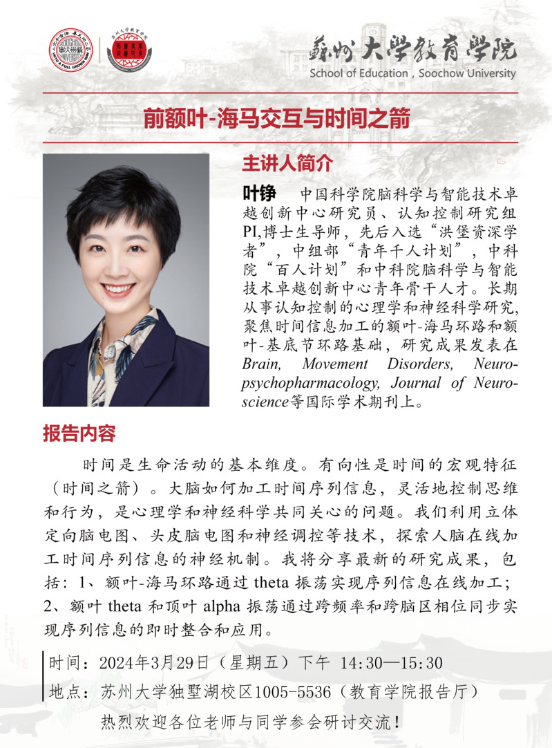 学术报告:前额叶-海马交互与时间之箭[3.29]