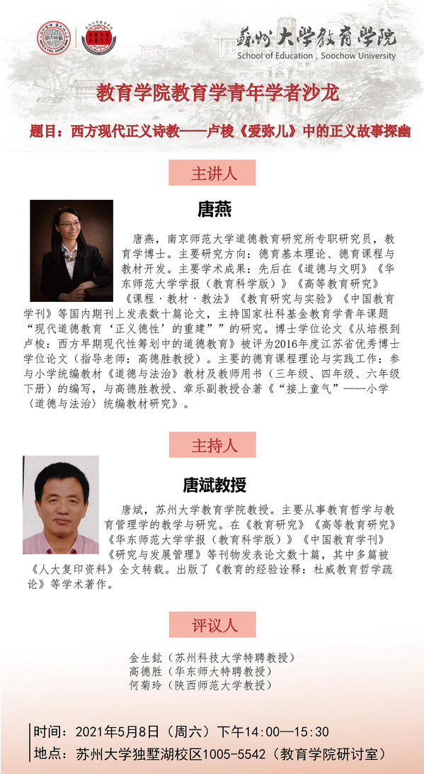 学术报告:西方现代正义诗教——卢梭《爱弥儿》中的正义故事探幽[5.8]